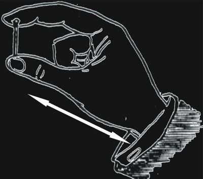 Lay your hand in a neutral position, palm down and measure from the thumb knuckle to the wrist knuckle----SEE DIAGRAM TO RIGHT